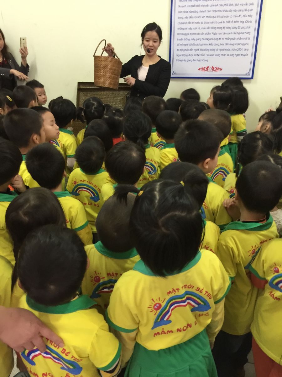Trẻ được khám phá các đồ dùng mây tre đan